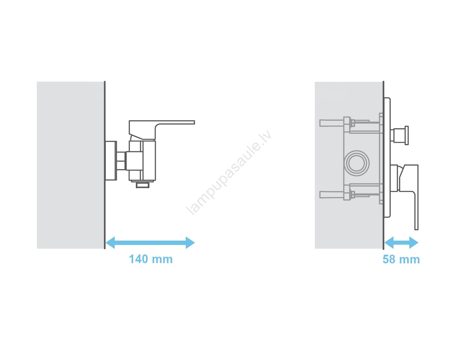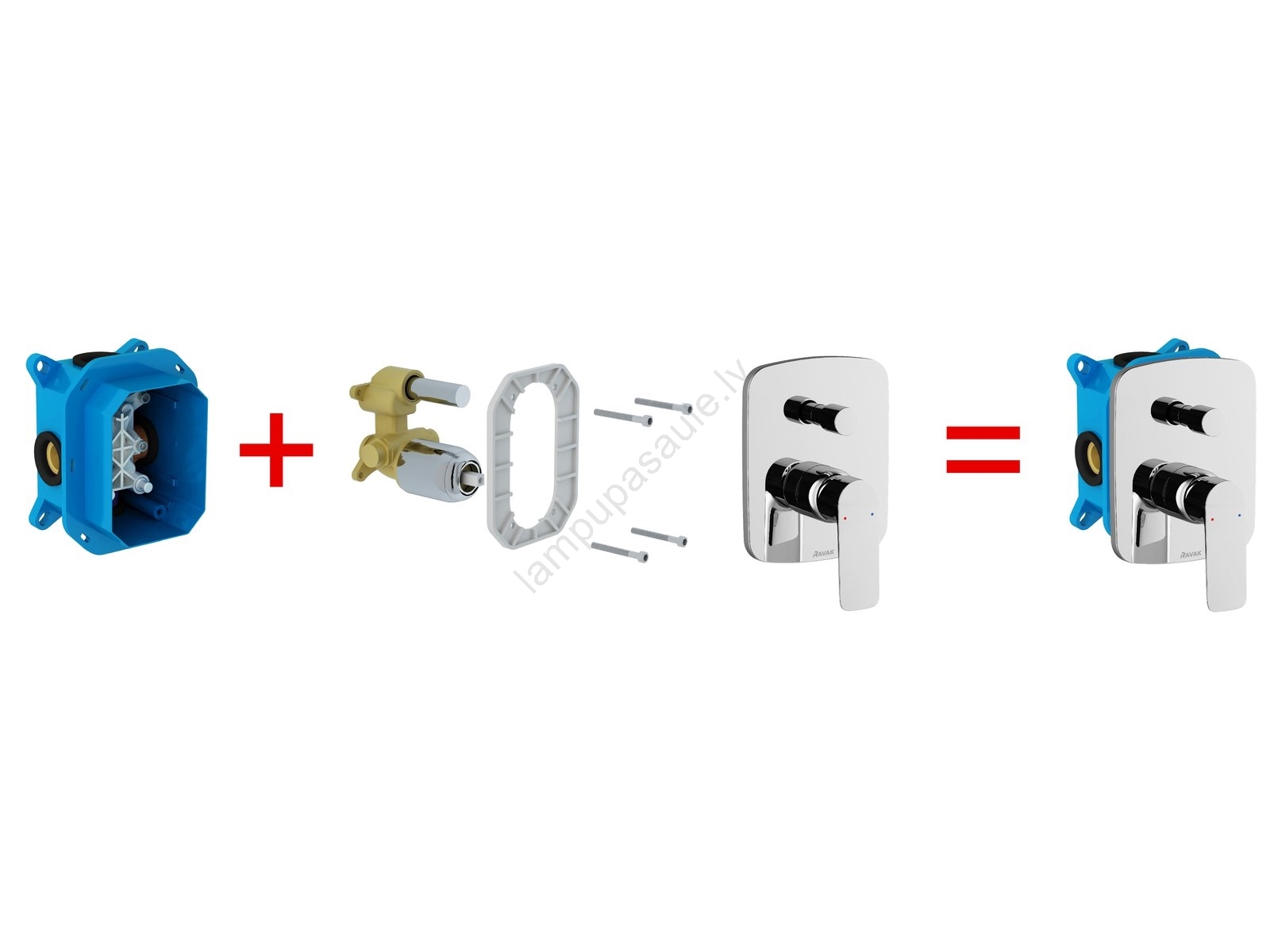 • Universāla uzstādīšanas sistēma sviras tipa vannas un dušas iebūvējamajiem jaucējkrāniem, kura tiek iebūvēta sienā.