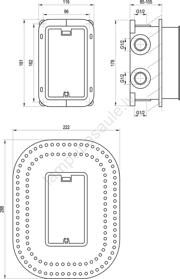 Ravak X070074 - Pamatkorpuss iebūvējamajiem jaucējkrāniem R-BOX MULTI 18,1x11,6 cm | Lampupasaule