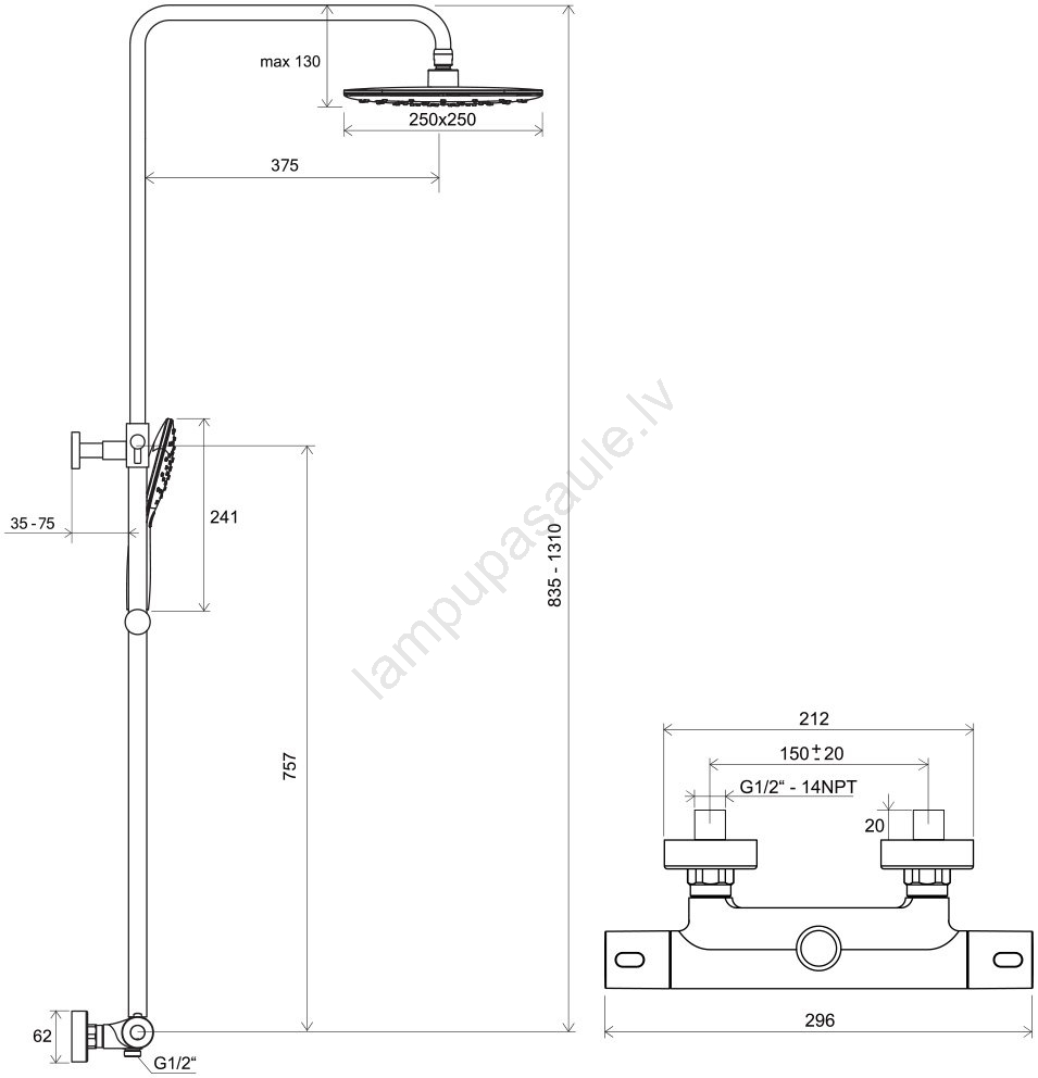 • Dušas stabs ir piemērots uzstādīšanai visās dušas kabīnēs.