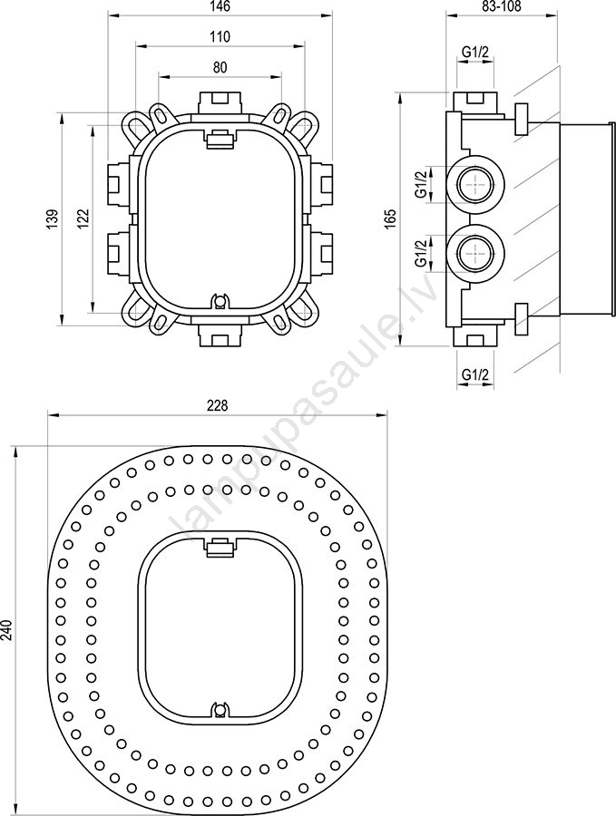 Ravak X070139 - Pamatkorpuss iebūvējamajiem jaucējkrāniem R-BOX VARI 13,9x14,6 cm | Lampupasaule