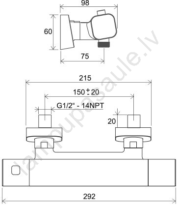 • 150 mm starpcentru attālums ļauj uzstādīt to pie visām dušas kabīnēm.
