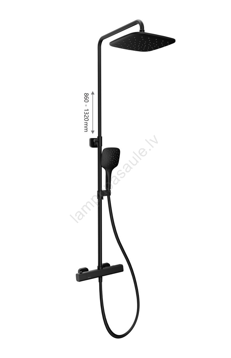 • Termostatiskā dušas staba augstums ir elastīgs un regulējams no 86 līdz 133,5 cm.
