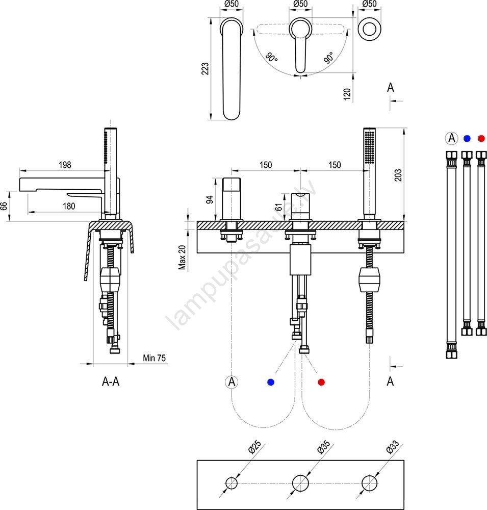 • Šis trīs atveru vannas maisītājs ir elegants papildinājums jebkurai vannas istabai.