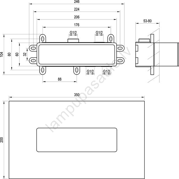 • Paredzēts horizontālajiem iebūvētajiem jaucējkrāniem sērijā Espirit ES 065.00.O2.RB07D+S., ES 068.00.O3.RB07D+S. un Eleganta EL 065.00.O2.RB07D+S., EL 068.00.O3.RB07D+S.