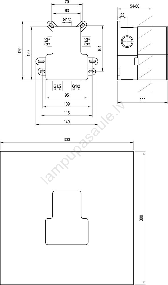 • R-box ir universāla uzstādīšanas sistēma 2-virzienu iebūvējamiem jaucējkrāniem, kas tiek ierīkota sienā.