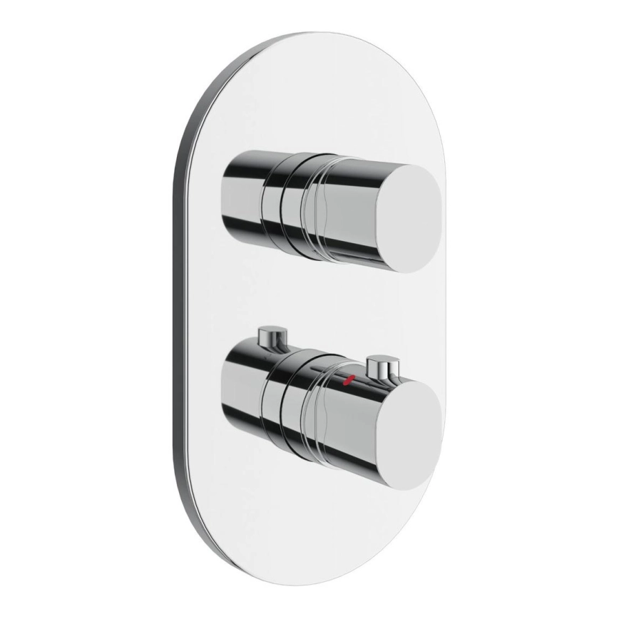 • Termostatiskais iebūvējamais divu ceļu jaucējkrāns Chrome II ar eleganto hroma apdari ir paredzēts uzstādīšanai instalācijas korpusā.