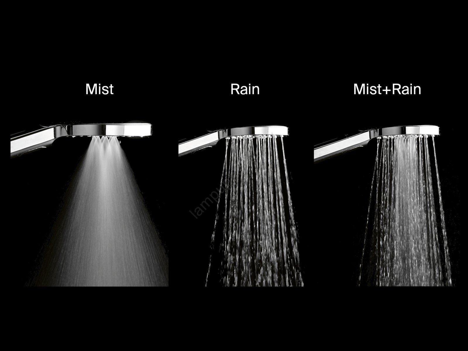 • Rokas duša piedāvā trīs ūdens plūsmas režīmus – Mist, Rain un to kombināciju Mist + Rain.