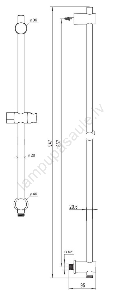 • Dušas stienis ar slīdējošu turētāju.