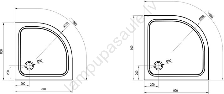 Ravak XA247701010 - ELIPSO kvadrantveida dušas paliktnis 90x90 cm, balts | Lampupasaule