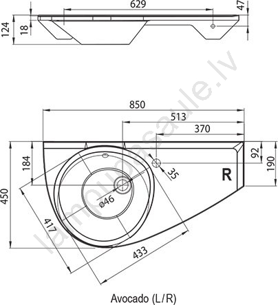 • Izlietnes izmēri ir 85 x 45 cm, kas ļauj to uzstādīt arī šaurākās vietās, piemēram, virs Avocado vannas.