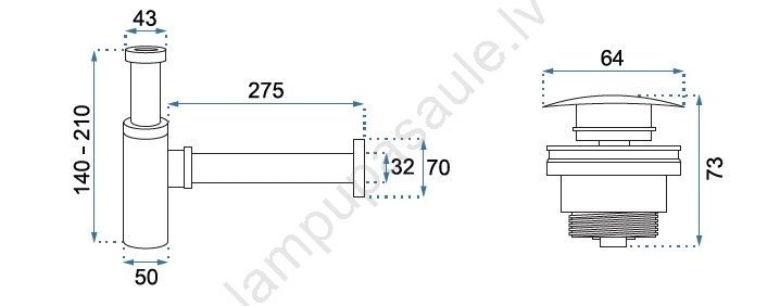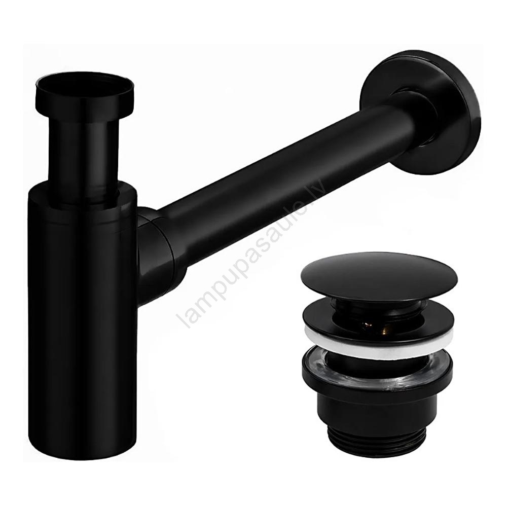REA-A5215 - Izlietnes sifons ar CLICK-CLACK aizbāzni, diam. 6,4 cm, matēts melns | Lampupasaule