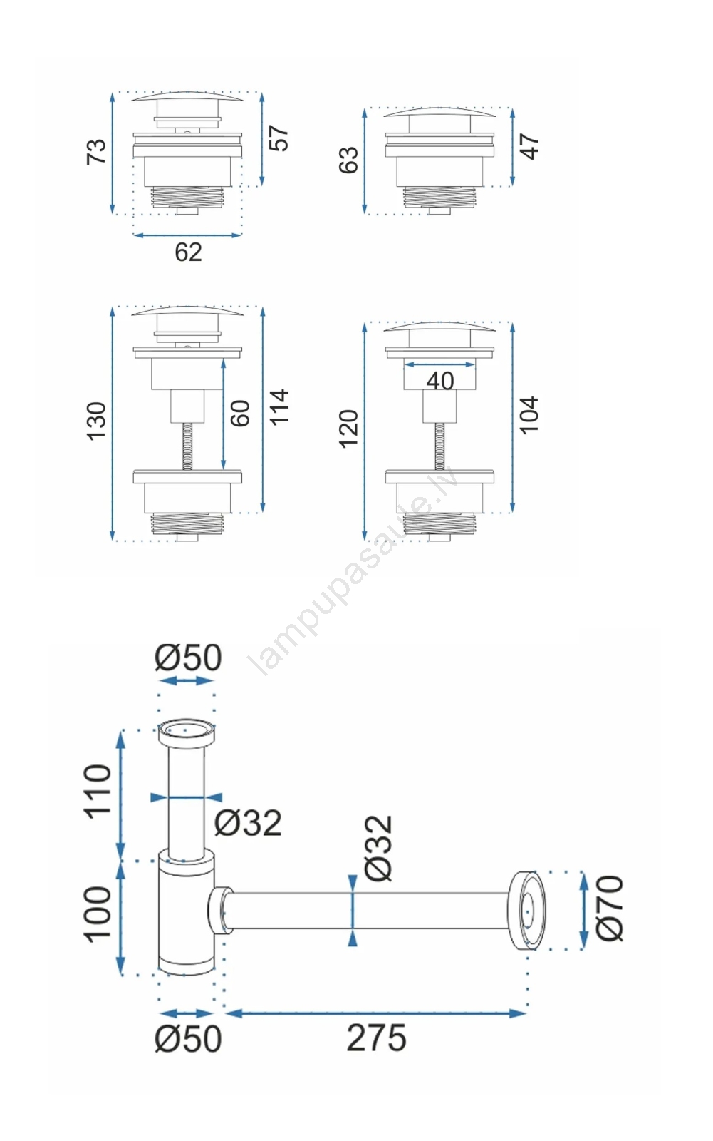 • Sifons ir piemērots visām izlietnēm ar standarta 45 mm noteces atveri.