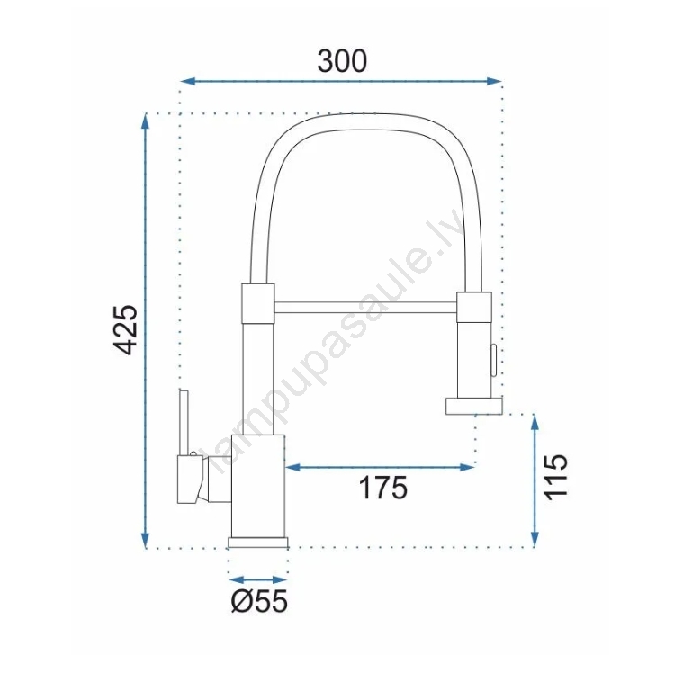 • Vienas sviras virtuves jaucējkrāns ar augstspiediena darbību un grozāmu izteces kaklu.