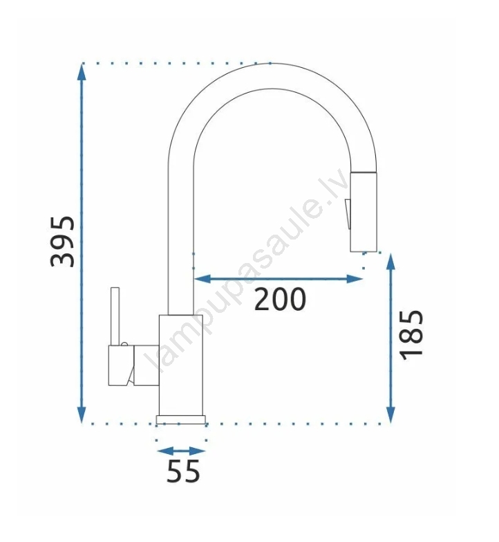 • Vienas sviras virtuves jaucējkrāns ar augstu spiedienu un grozāmu iztecēju.