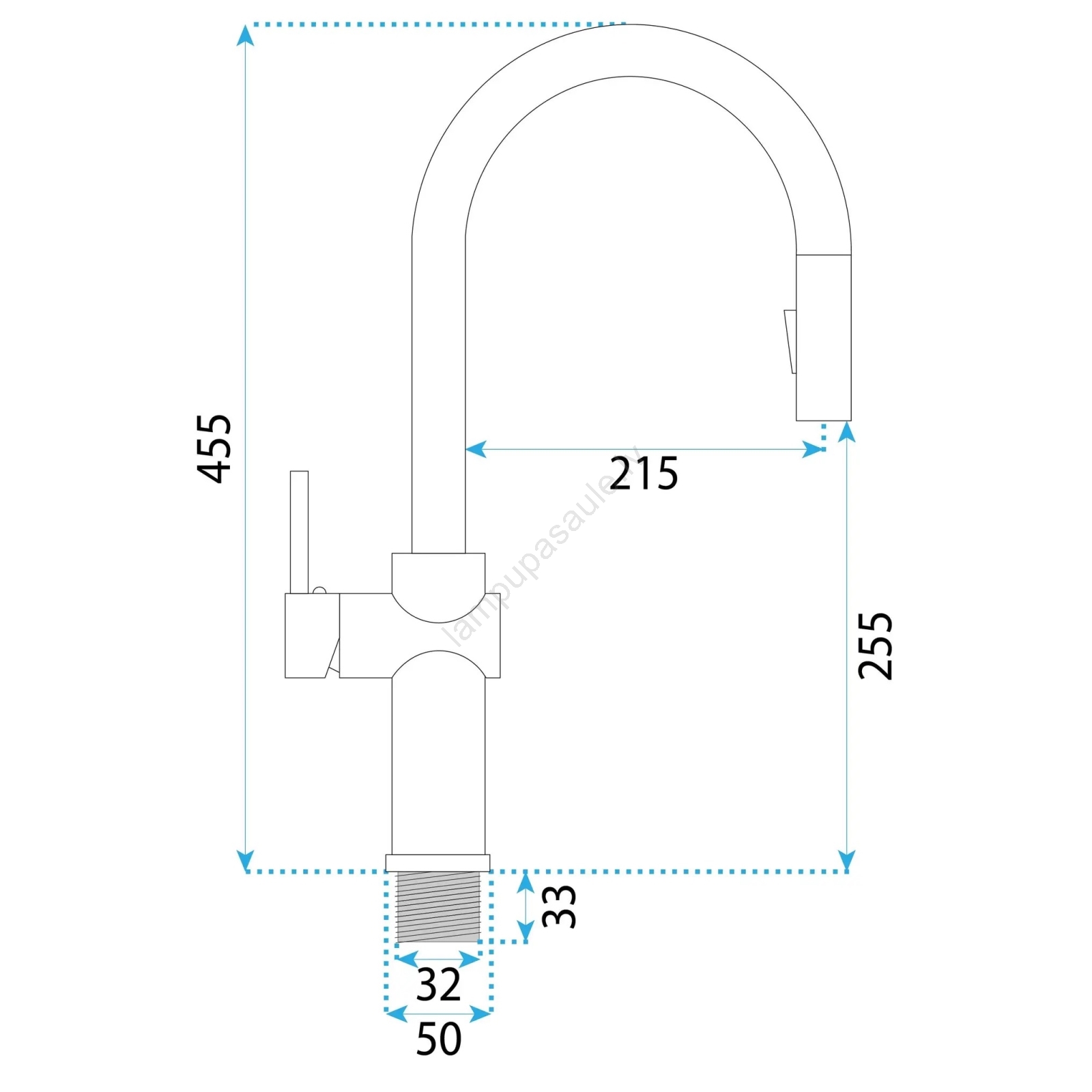 • Vienas sviras virtuves jaucējkrāns ar augstspiedienu un grozāmu iztecēju.