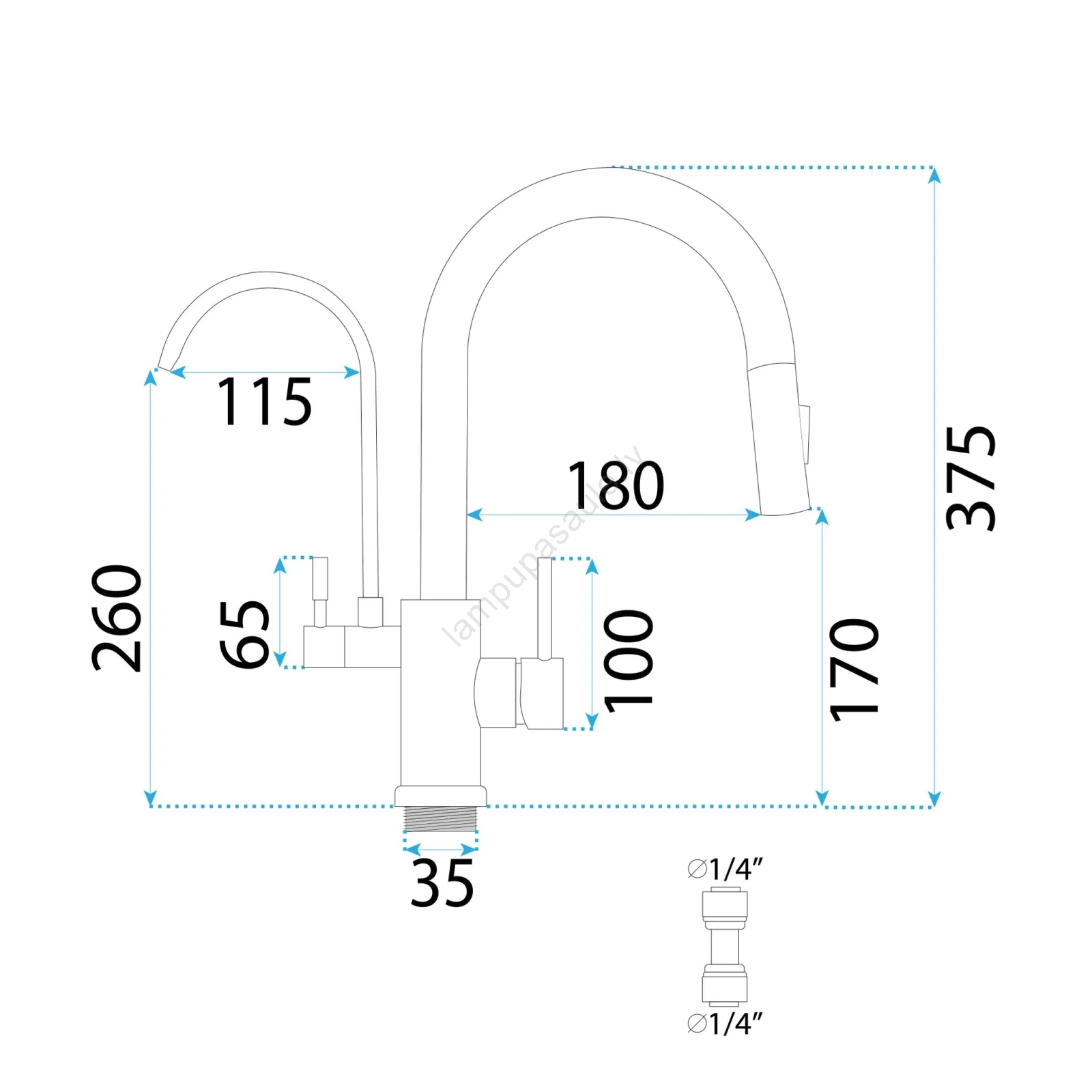 • Iespēja pieslēgt ūdens filtrēšanas ierīci (vadībai paredzēta mazāka svira).