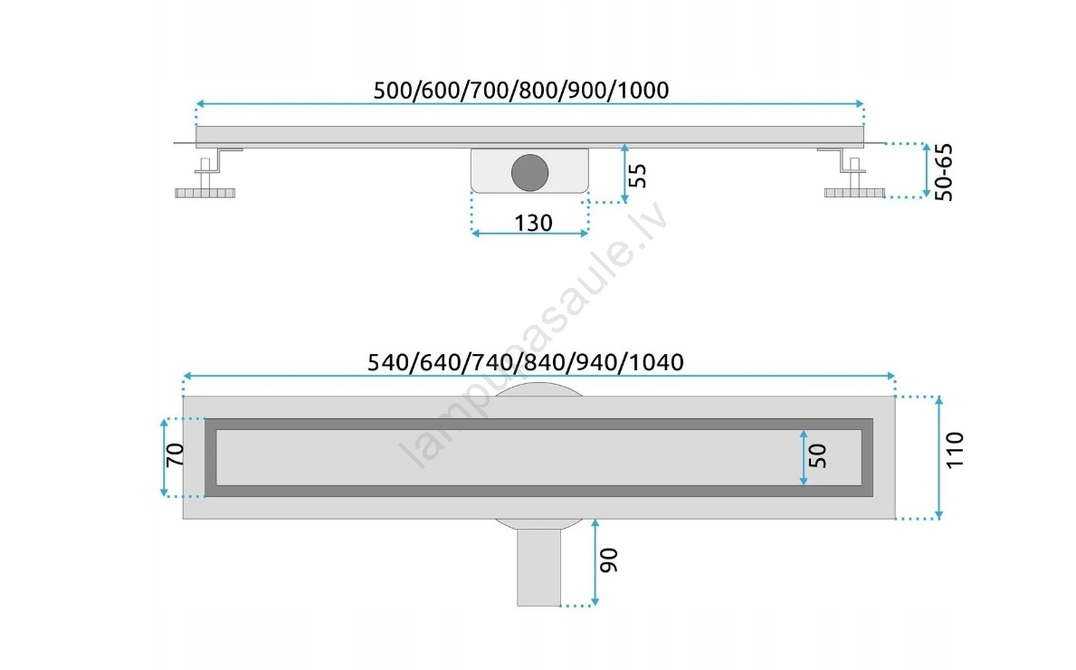 • Ar augstumu regulējamām kājiņām (50–65 mm) noteci var viegli pielāgot dažādiem grīdas apstākļiem.