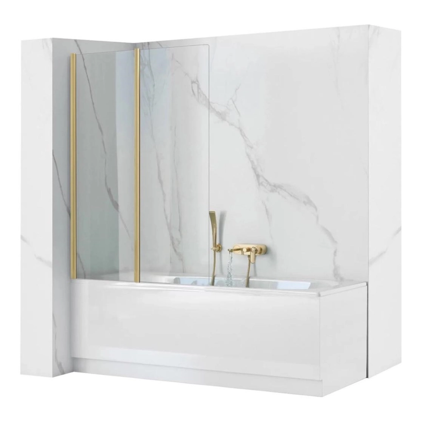 REA-K9777 - Salokāma vannas stikla siena AGAT 140x100 cm matēta zelta/caurspīdīga | Lampupasaule