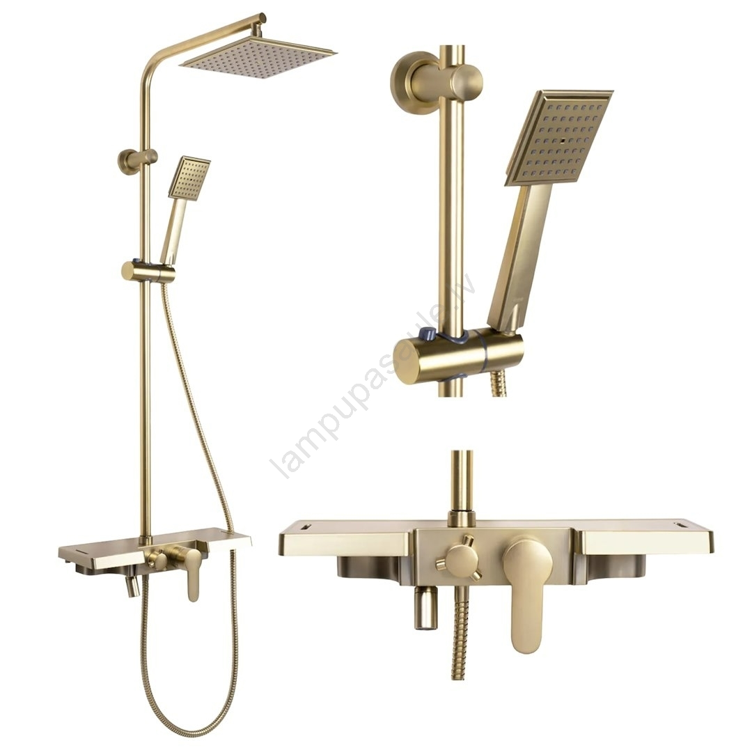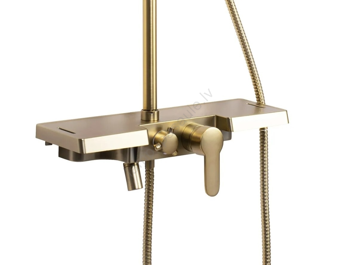 REA-P4121 - Dušas komplekts ar jaucējkrānu BRAVO, birstēta zelta apdare | Lampupasaule