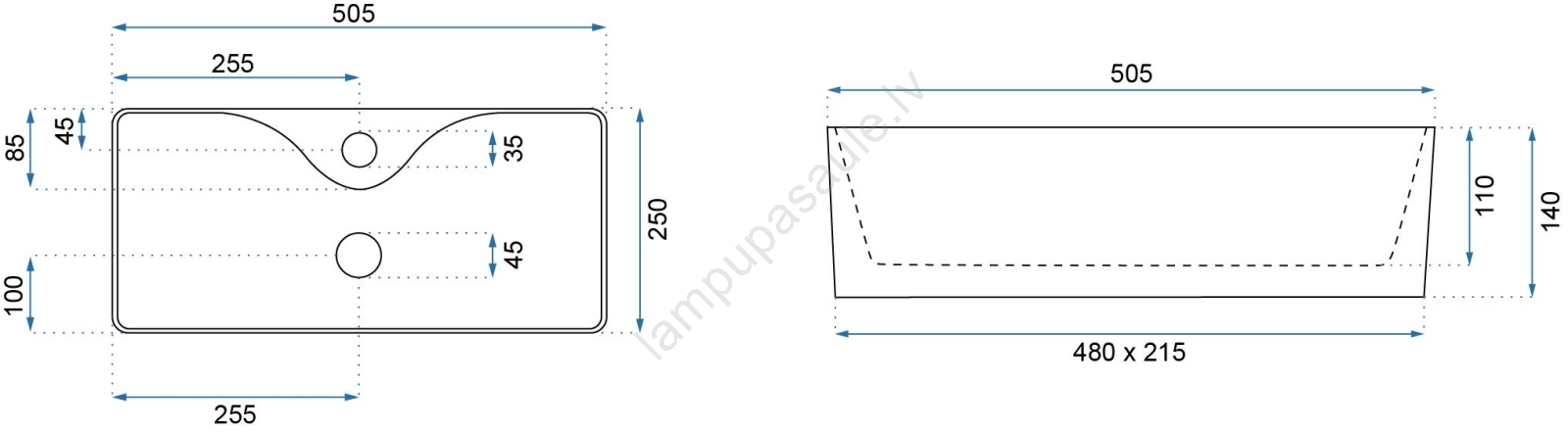 REA-U0699 - Virsmas uzliekama izlietne MERY 25 x 50,5 cm keramika/glancēta balta | Lampupasaule