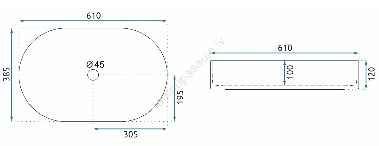 REA-U1055 - Uz virsmas uzstādāma izlietne NADIA 38,5x61 cm keramika/glancēta balta | Lampupasaule
