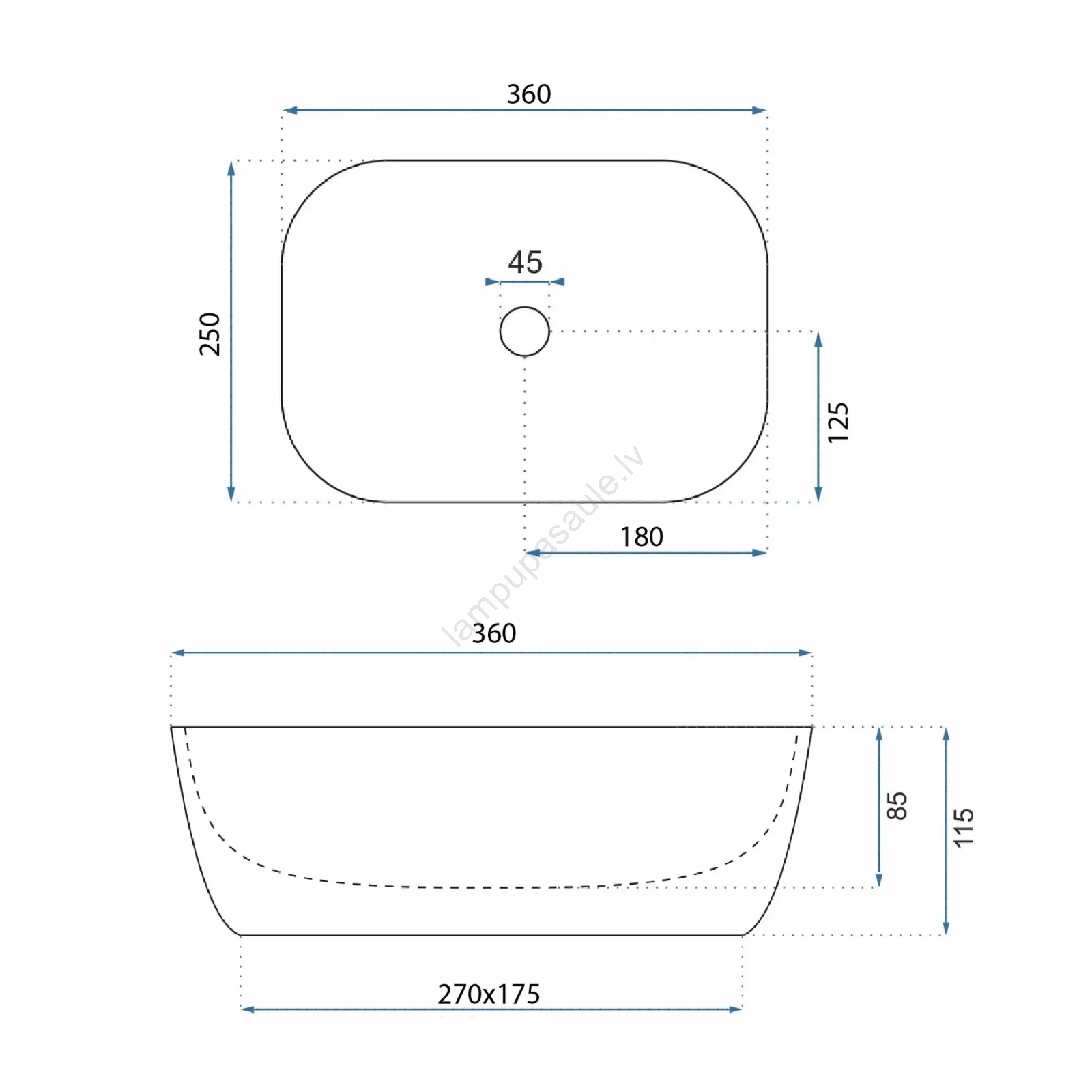 • Izlietnes jaucējkrāns un noteces komplekts nav iekļauti.