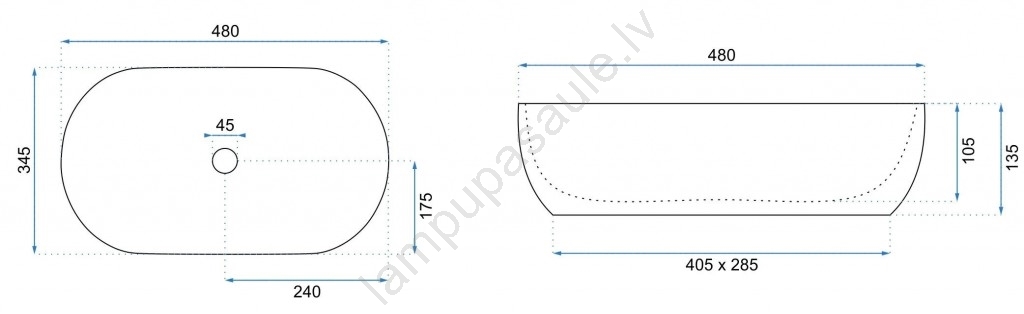 • REA-U0416 - Uz virsmas uzstādāma izlietne AMELIA 34,5x48 cm keramika/glancēta balta