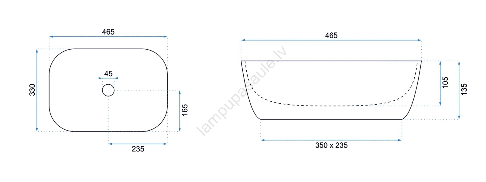 • Izlietnes jaucējkrāns un aizbāžnis nav iekļauti komplektā.