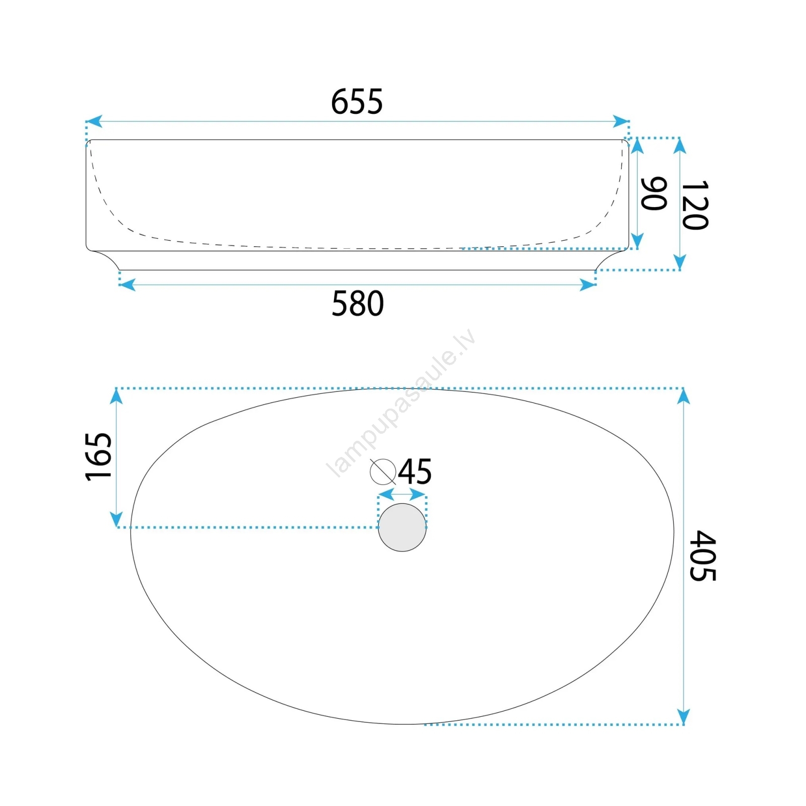 • Izlietnes jaucējkrāns un noteces komplekts nav iekļauti komplektā.