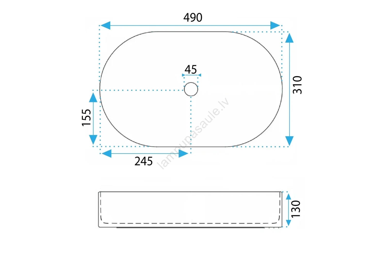 • REA-U6375 - Uz virsmas uzstādamā izlietne VANDA 31x49 cm, keramika, matēta zila