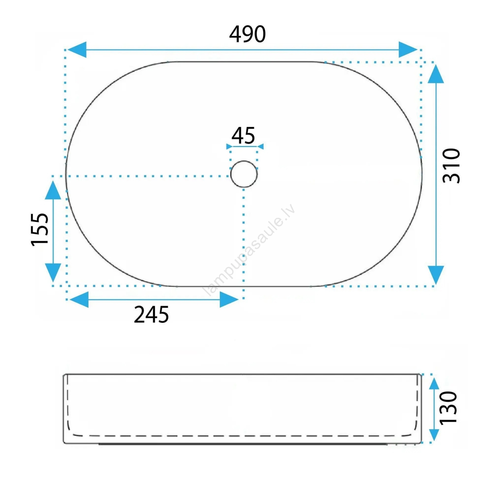 • REA-U6375 - Uz virsmas uzstādamā izlietne VANDA 31x49 cm, keramika, matēta zila
