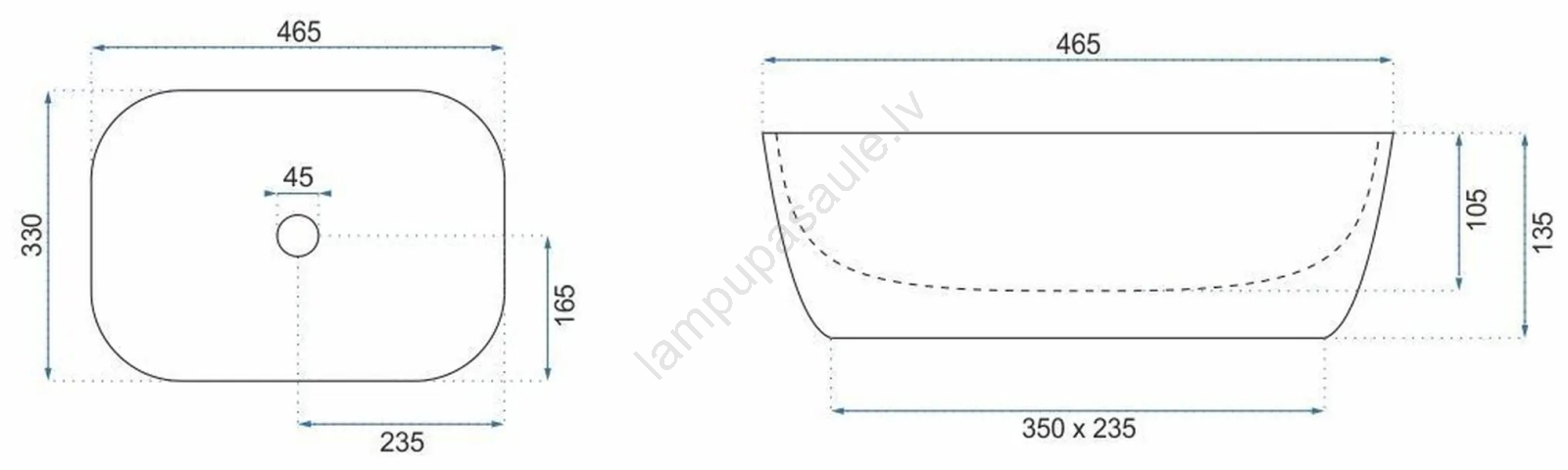 • REA-U4000 - Virsmas uzstādāma izlietne BELINDA 33x46,5 cm, keramika/akmens imitācija