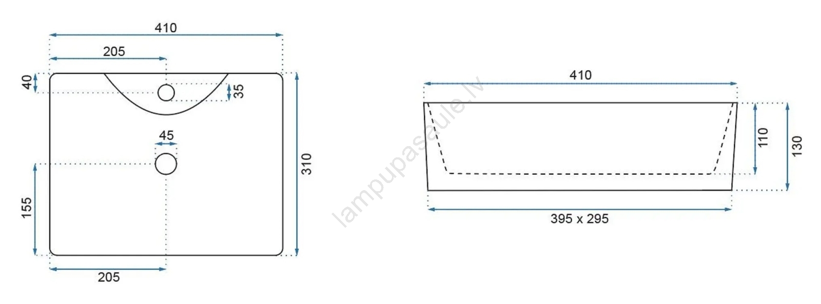 • Izlietnes jaucējkrāns un noteka nav iekļauti komplektā.