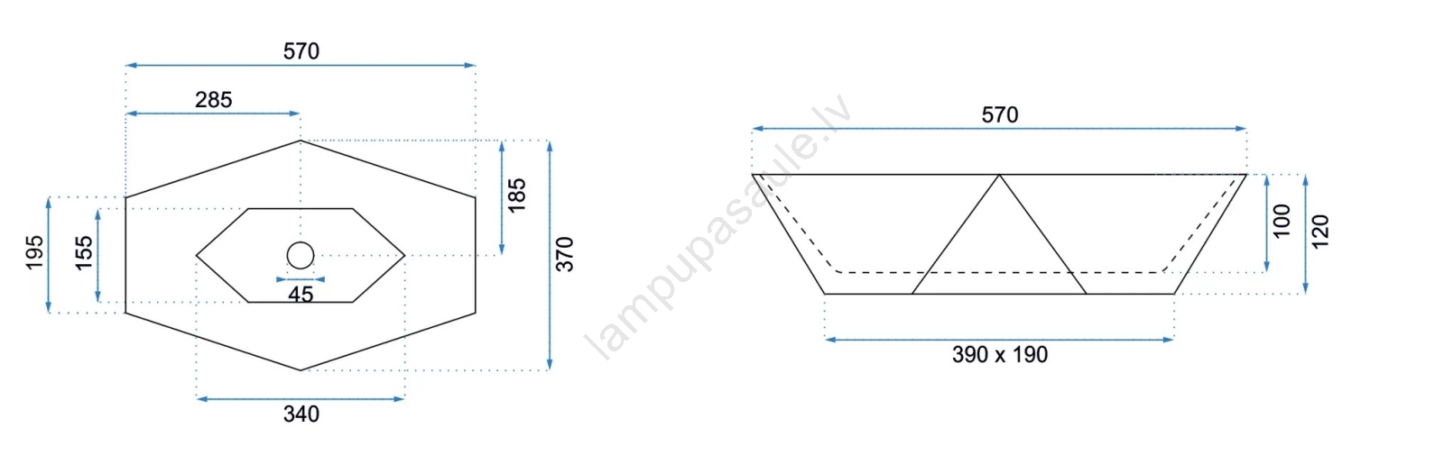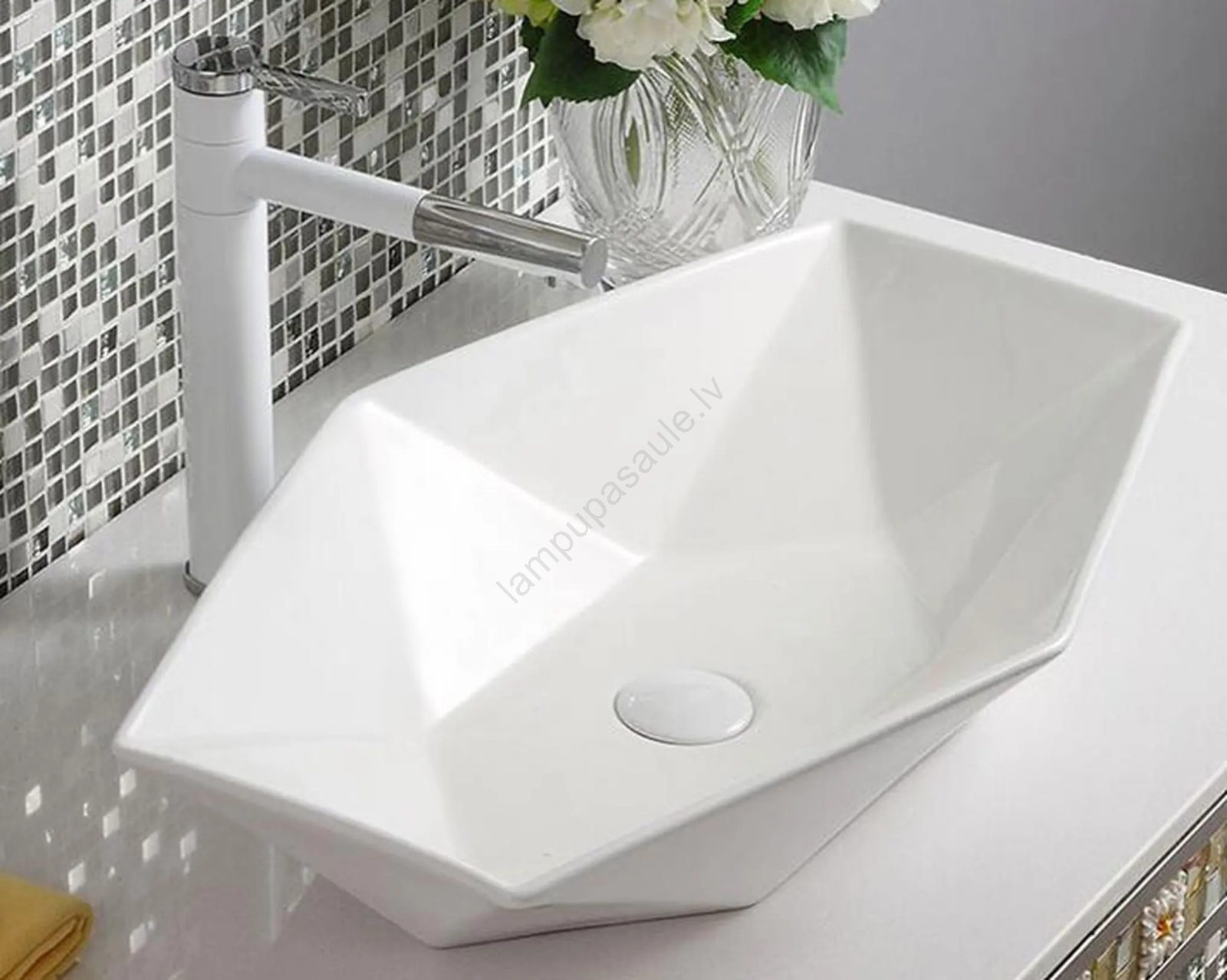 • Izlietnes jaucējkrāns un noteces aizbāžnis nav iekļauti komplektā.