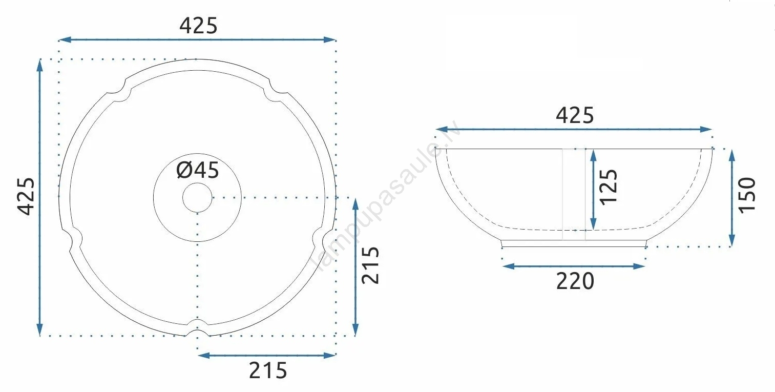 • REA-U5666 - Virsmas uzstādāma izlietne VIVIEN Ø 42,5 cm, keramika, ornamentāls raksts