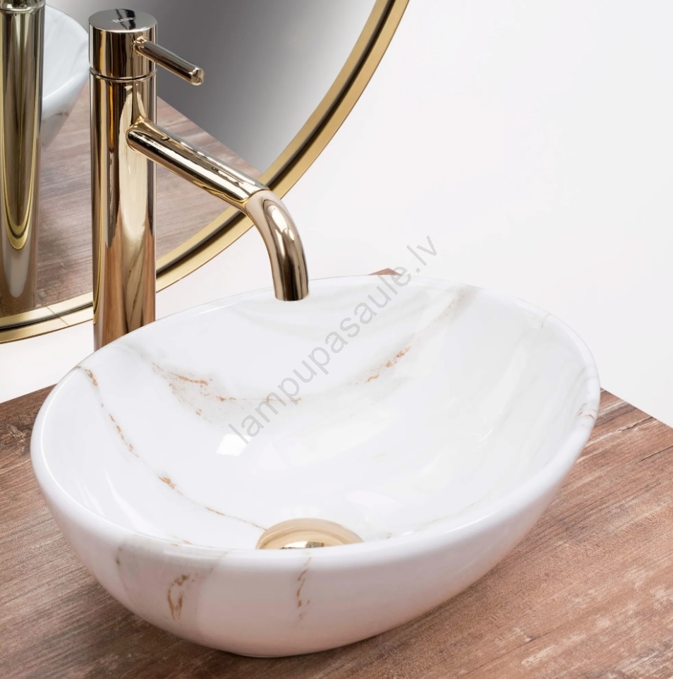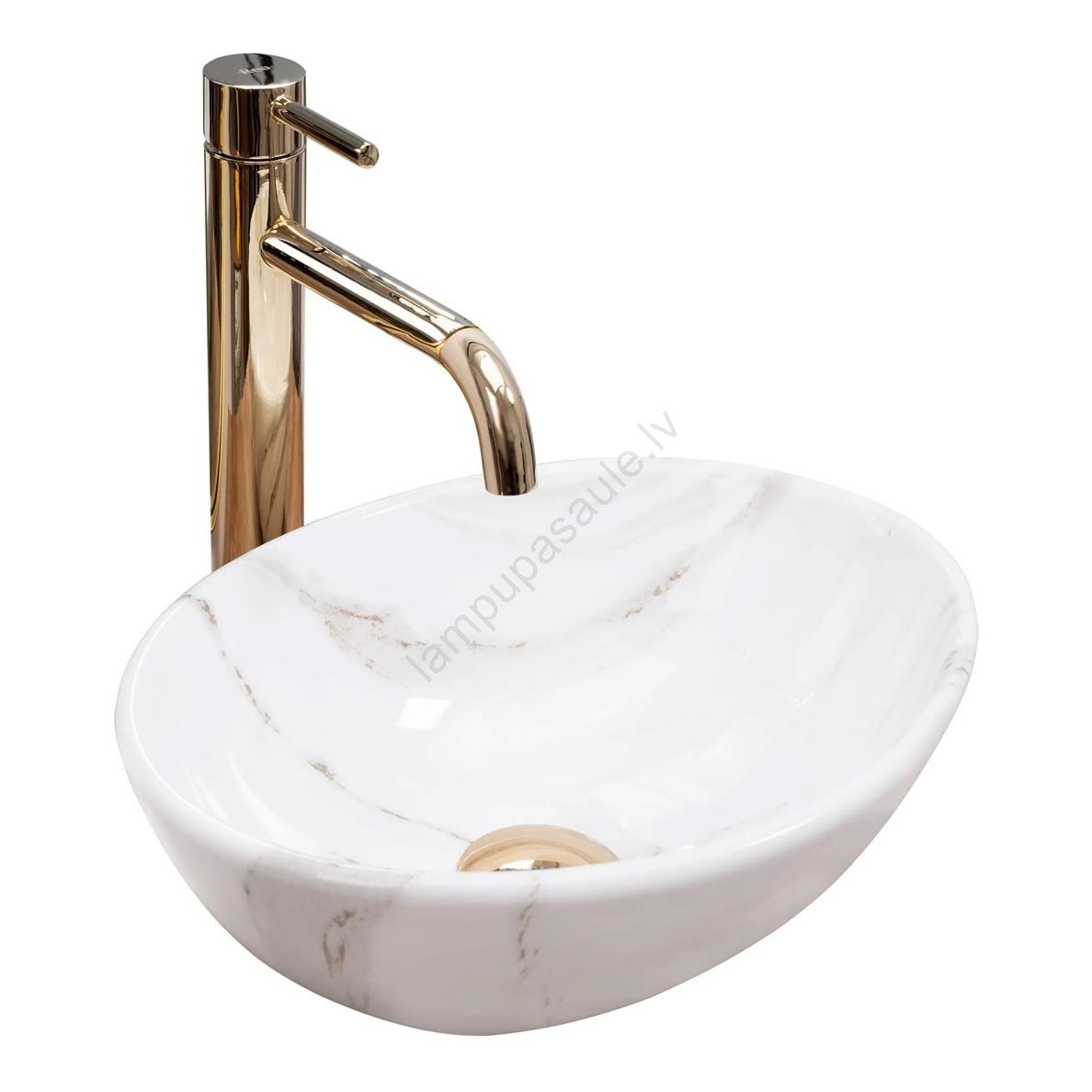 REA-U8014 - SOFIA MINI uz virsmas uzstādāma izlietne 27x34 cm, keramika ar marmora dekoru | Lampupas