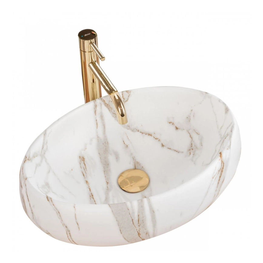 REA-U8568 - Virsmas uzstādāma izlietne LINDA 34x48,5 cm keramika/marmora dekors | Lampupasaule