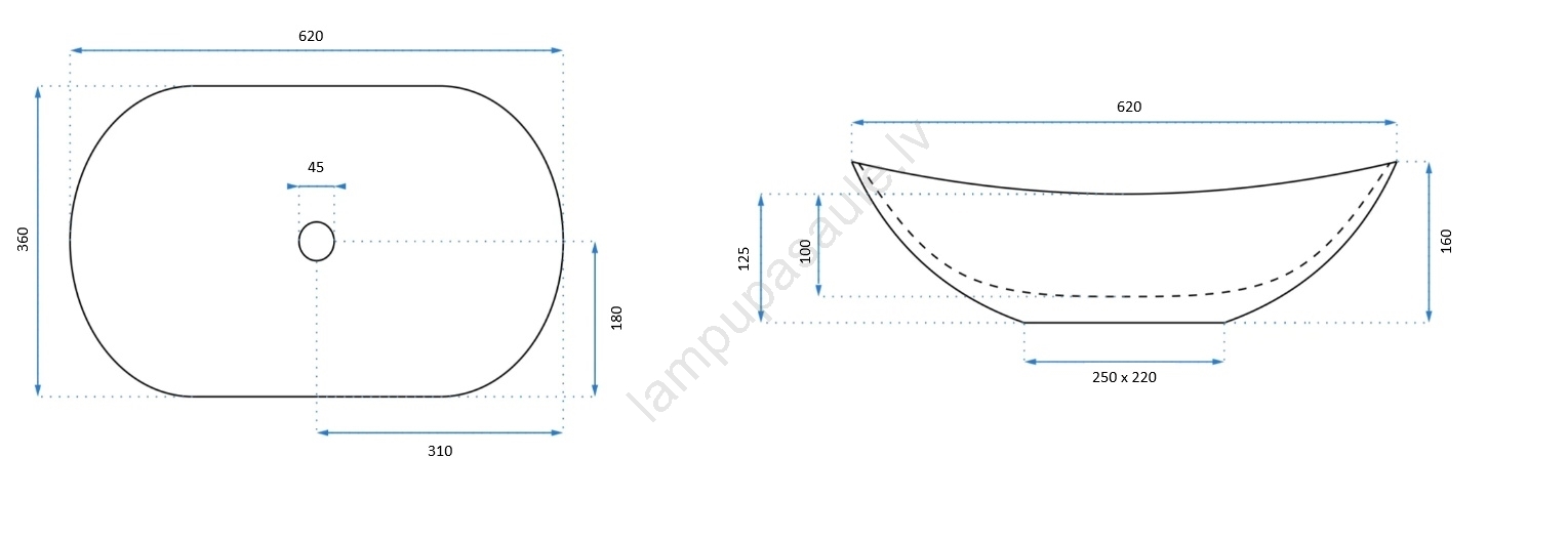 • REA-U7478 - Uz virsmas uzstādāma izlietne ROYAL 36x62 cm keramika/melna/marmora dekors