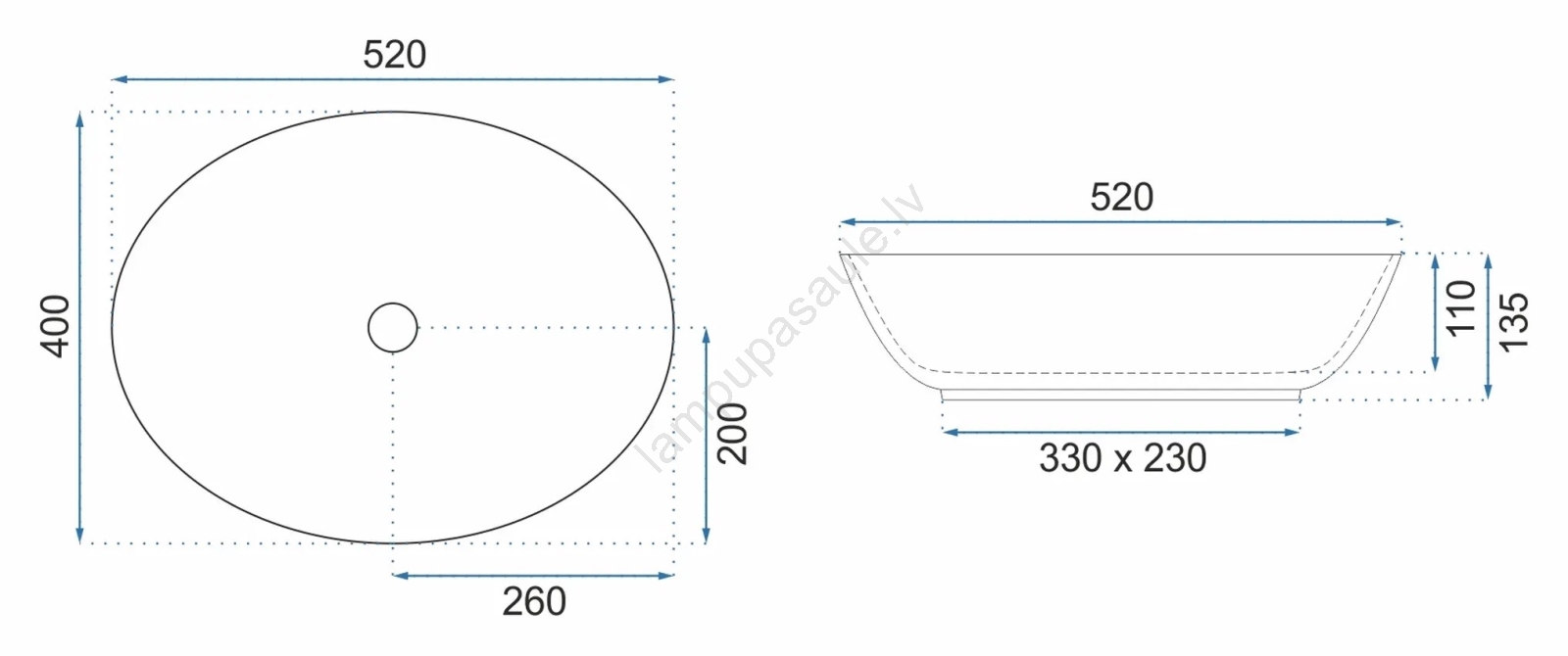 • Izlietnes jaucējkrāns un noteka nav iekļauti komplektā.