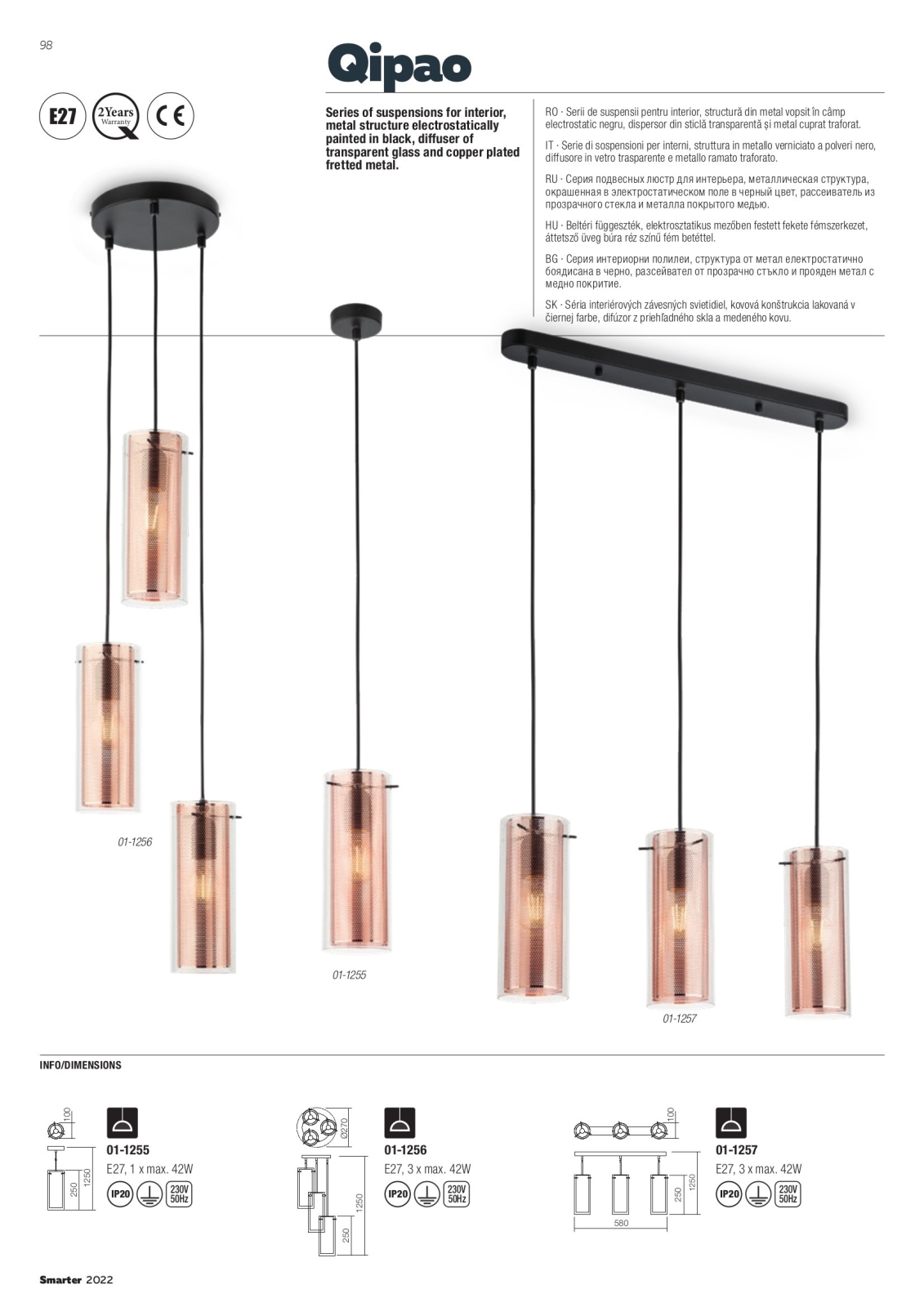 Redo 01-1257 - Pakaramā lampa uz vada QIPAO 3xE27/42W/230V