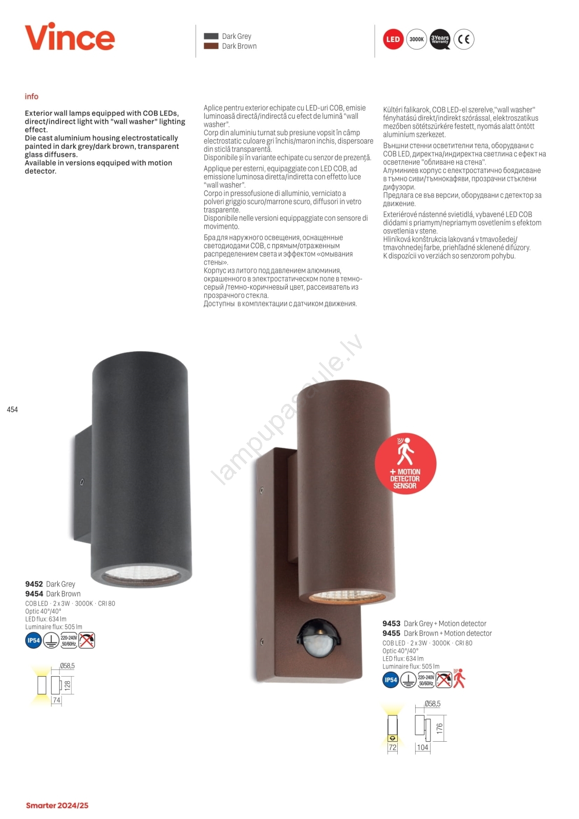 Redo 9453-LED Āra sienas lampa ar sensoru VINCE 2xLED/3W/230V IP54 antracīta | Lampupasaule