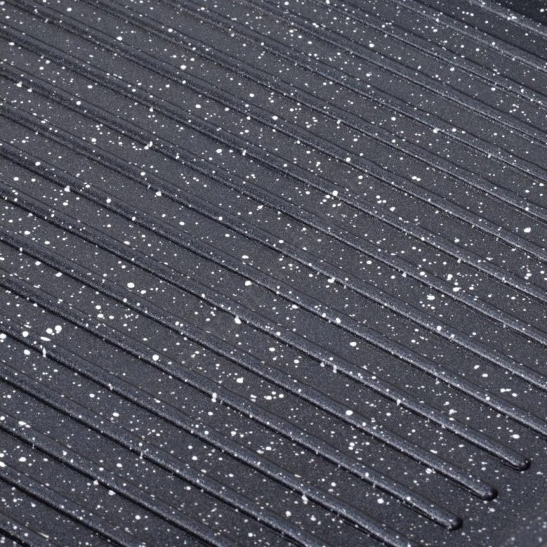 • Rebraina virsma ne tikai rada raksturīgās grila svītras, bet arī ļauj efektīvi novadīt liekos taukus.