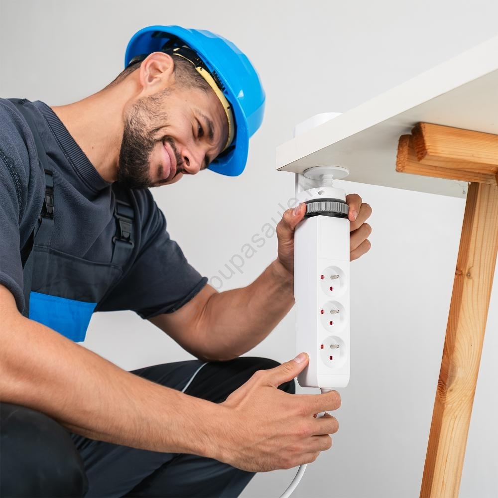 Pagarinātāja kabelis ar galda stiprinājumu 3 kontaktligzdas (E tips) + 2xUSB-A + 1xUSB-C 1,5m balts