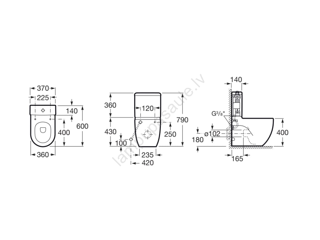 Roca A341242000 - MERIDIAN skalošanas tvertne ar apakšējo pieslēgumu, keramika/balta | Lampupasaule