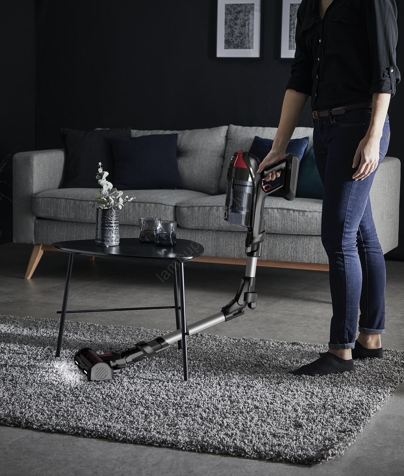 • Noņemama 25,2V baterija ar darbības laiku līdz 45 minūtēm (Eco režīmā, lietojot kā rokas putekļsūcēju).