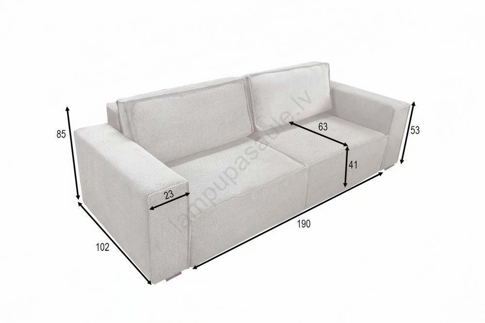 • Dīvāna aizmuguri rotā kvalitatīvs apšuvums, kas ļauj novietot dīvānu brīvi telpā.