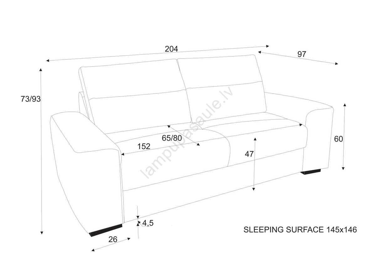 • Nodrošina pietiekami daudz vietas relaksācijai, vai nu lasot, skatoties televizoru vai atpūšoties pēc garas dienas.