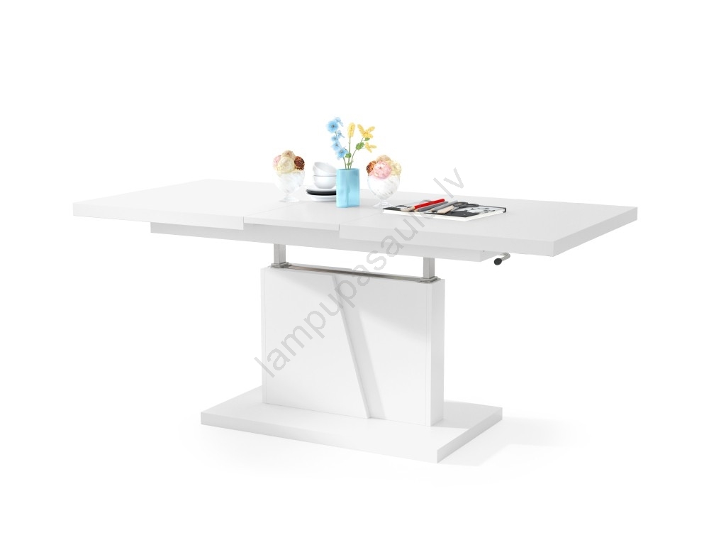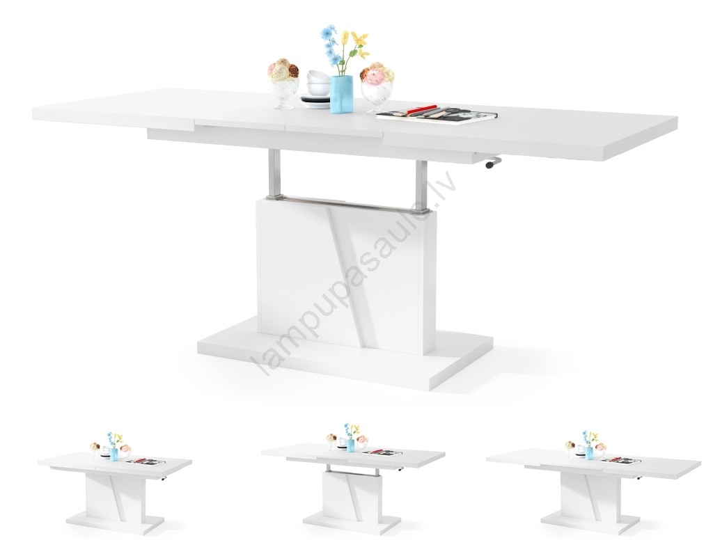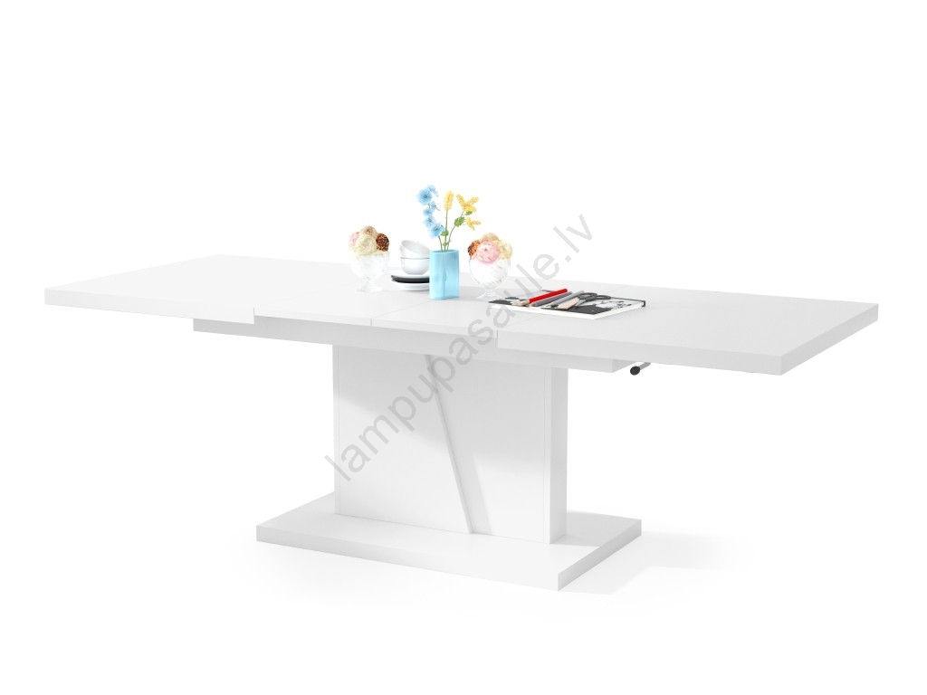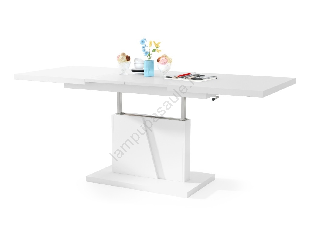 Paplašināms konferenču/ēdamistabas galds ar paceļamu galda virsmu NINO, balts | Lampupasaule