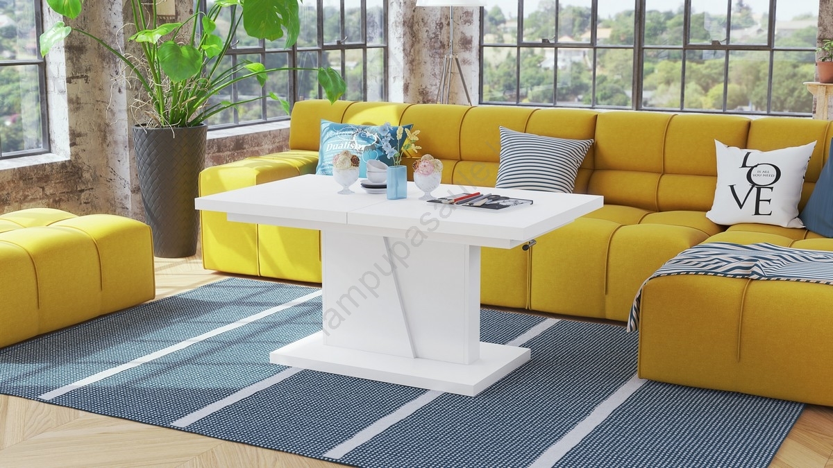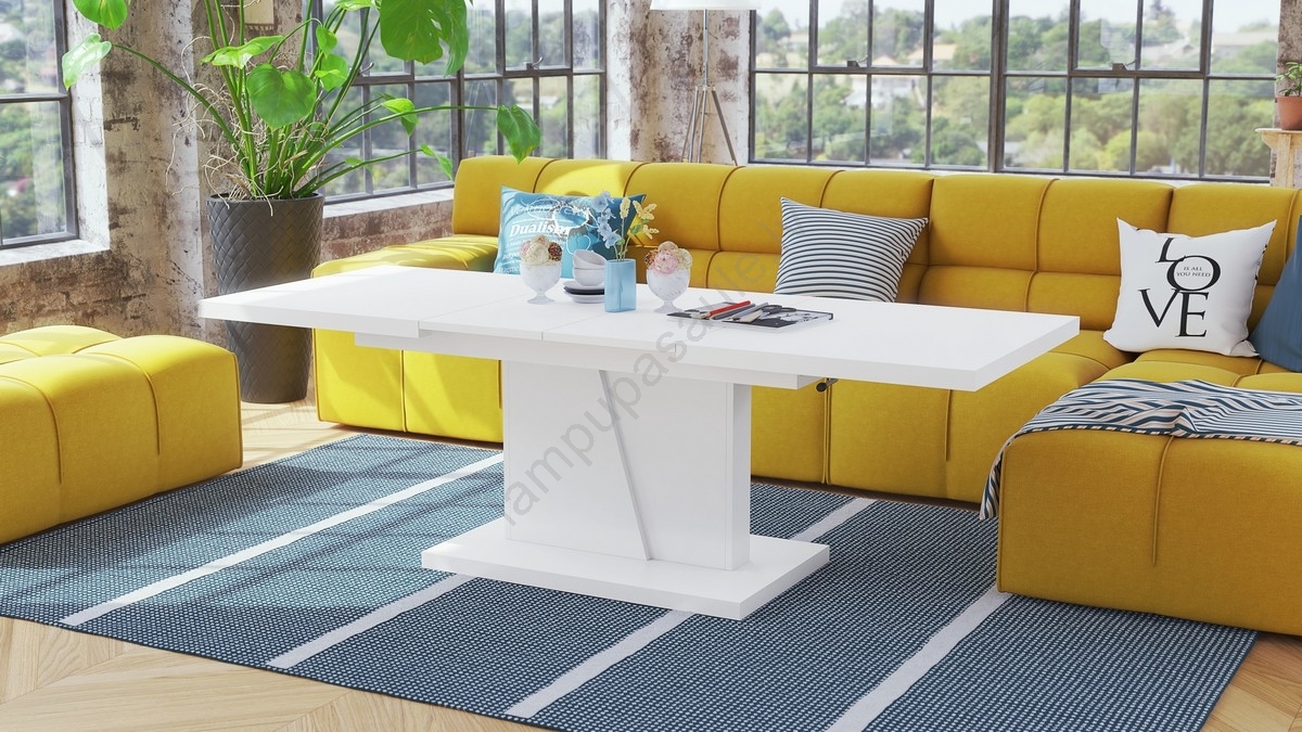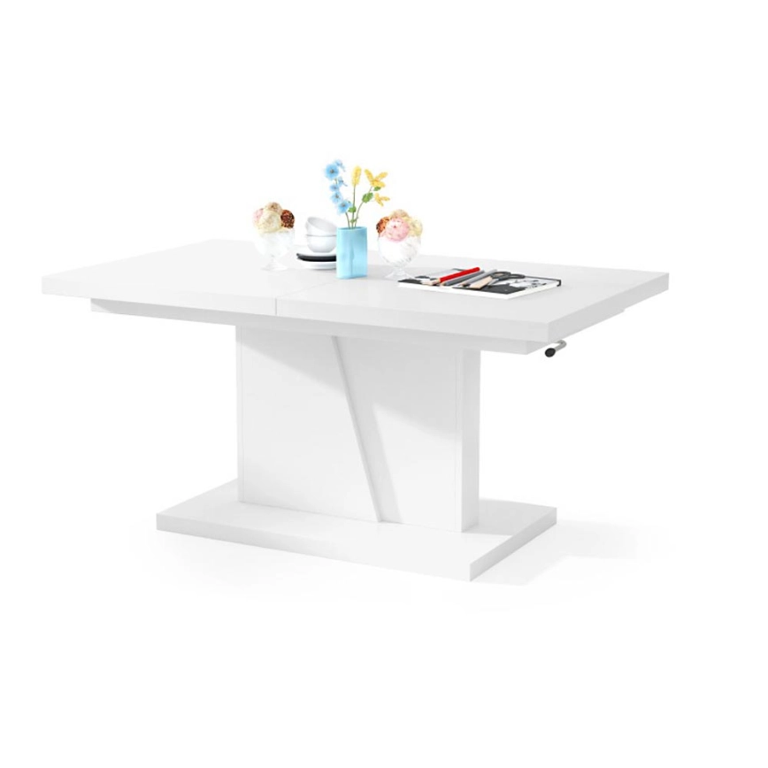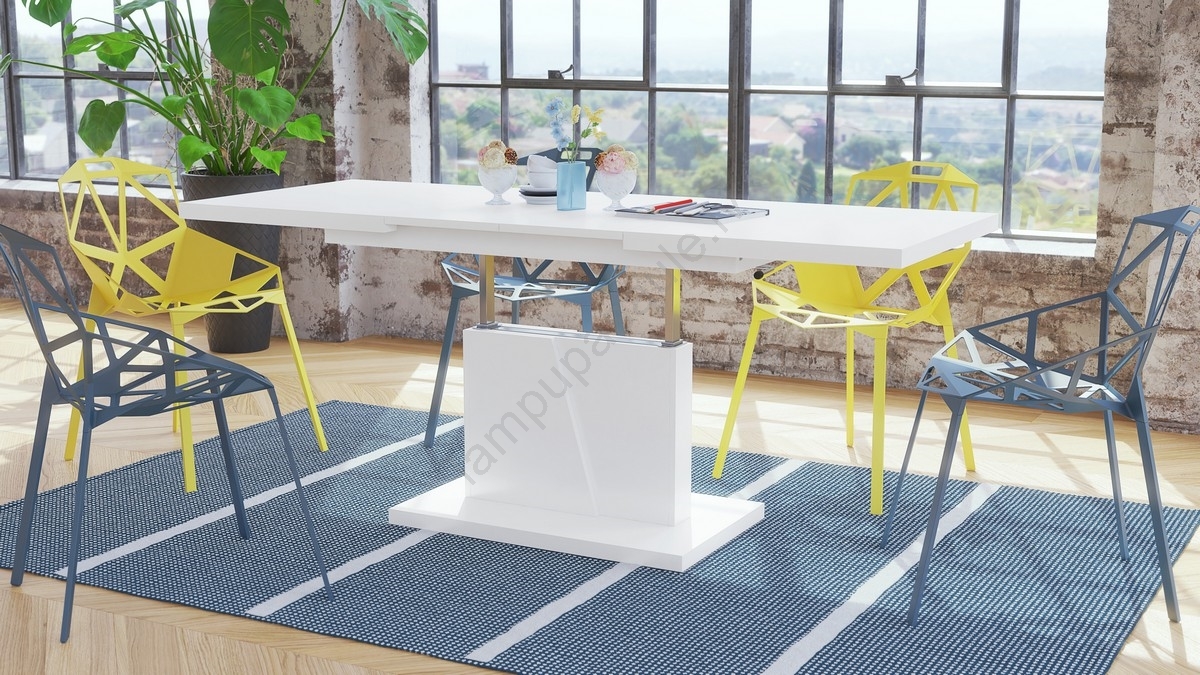 Paplašināms konferenču/ēdamistabas galds ar paceļamu galda virsmu NINO, balts | Lampupasaule