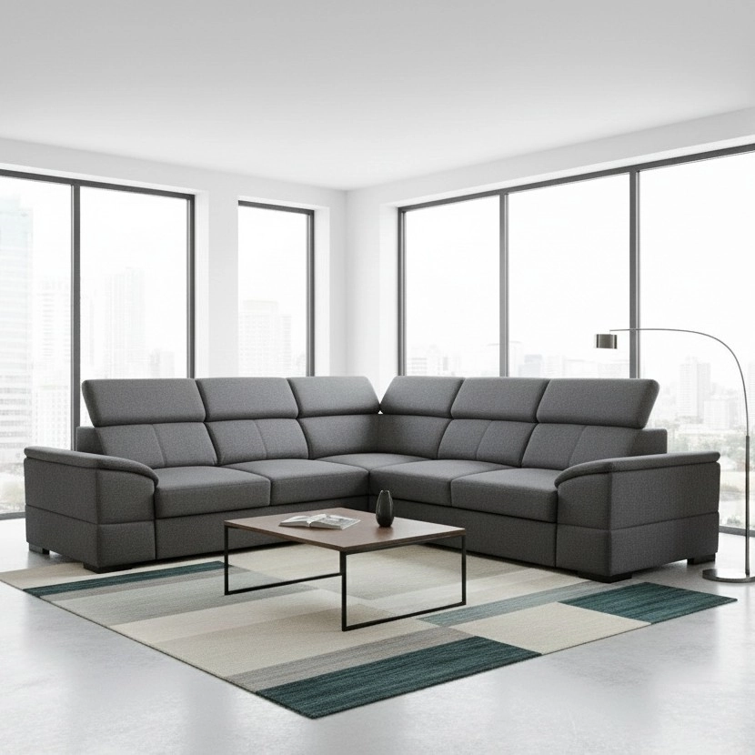 • Plašs stūra dīvāns nodrošina gan komfortu, gan stilīgu dizainu.